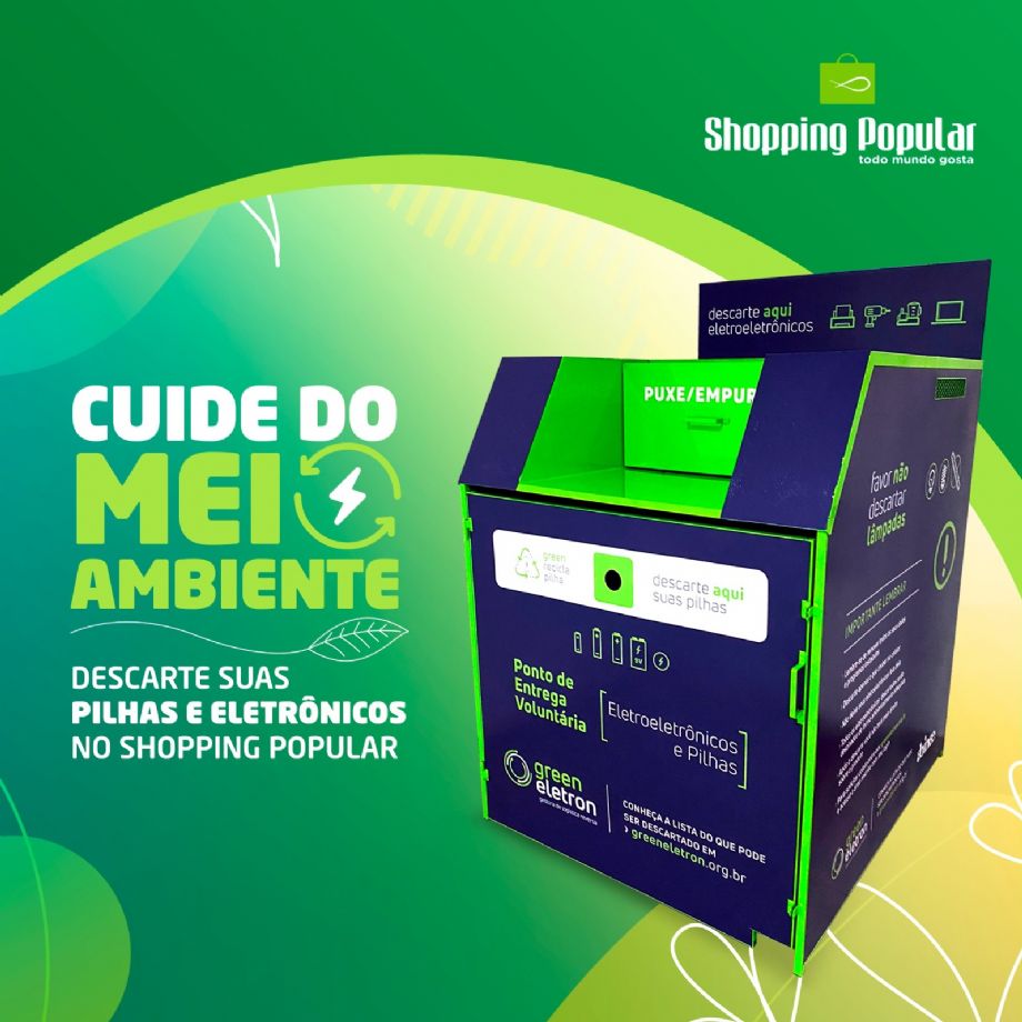 Os coletores de material estão disponíveis na rampa de acesso ao piso superior do Shopping Popular e todos os clientes podem fazer o descarte correto de pilhas, baterias e eletrônicos pequenos, podendo ainda acessar a lista dos resíduos que poderão ser descartados: