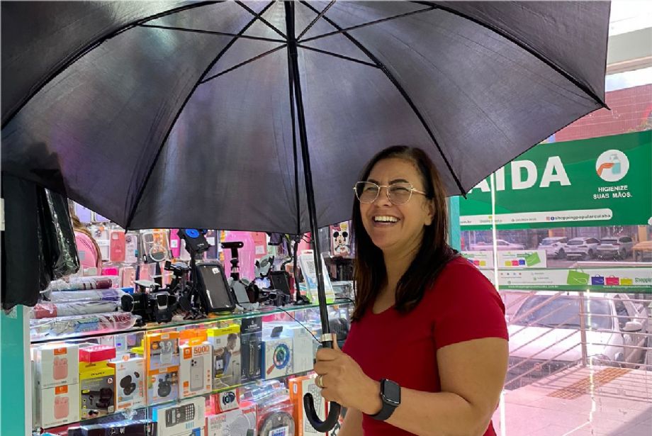 A proprietária da Lupita Imports (Box 32), Sônia de Oliveira Silva, que geralmente vende capinhas para celulares, acrescentou ao seu estoque sombrinhas, guardas chuvas para bolsas e com cabos. Ela conta que a idéia veio da procura dos clientes. “Estão pedindo para mim, e eu estava vendo que meus vizinhos não tinham, resolvi investir”. A comerciante afirma que o investimento valeu à pena e está otimista para as próximas semanas: “Quero vender aí uns 10 guarda chuvas por dia”.
