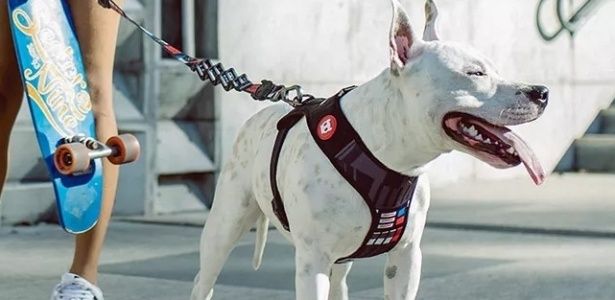 A guia (acessório que é preso à coleira ou ao peitoral do pet) com amortecedor tem uma tecnologia de amortecimento que absorve a força da puxada do cachorro, diz a empresa, e vem com um revestimento de neoprene na parte de dentro da alça, para dar mais conforto para quem a segura. O peitoral é um acessório colocado no dorso do animal recobrindo o peito.