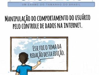 O tema da redação do Exame Nacional do Ensino Médio (Enem 2018) é "Manipulação do comportamento do usuário pelo controle de dados na internet". A prova teve quatro textos motivadores, sendo que três deles são trechos de reportagens e um trouxe um gráfico com dados.