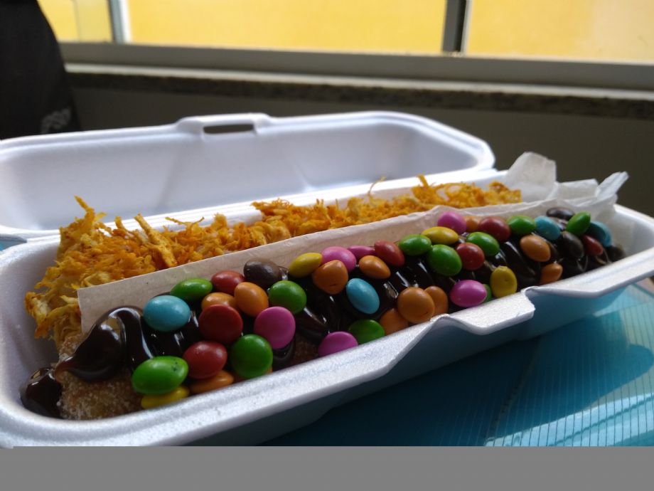 No Shopping Popular, o Churros da Uá, além dos sabores tradicionais e os gourmets como paçoca e Ovomaltine, traz as opções de recheios salgados como: queijo cheddar, catupiry, frango, bacon e carne seca.