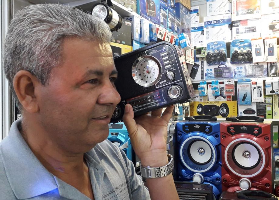 Partida de futebol sintonizado no rádio, só alegria, só no Shopping Popular