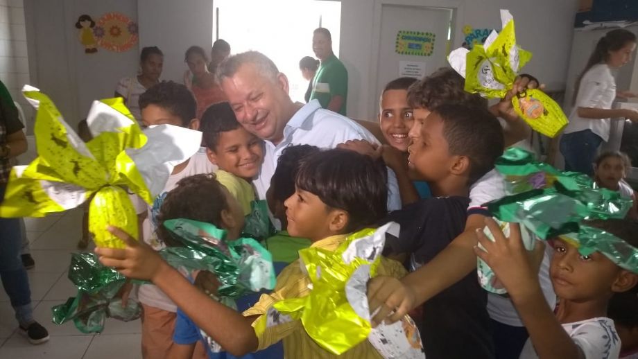 A loja da Cacau Show do Shopping Popular em parceria com o vereador Misael Galvão (PSB) presidente da Câmara Municipal de Cuiabá, fizeram a entrega solidária de ovos de páscoa no bairro Doutor Fábio I, na tarde de terça-feira (16). A ação social beneficiou às crianças que são matriculadas no Centro de Referência de Assistência Social – Dom Bonifácio Piccinini (CRAS).