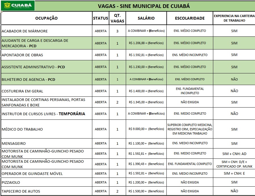 As empresas interessadas em divulgar vagas, devem encaminhar um e-mail para sine.pmc@cuiaba.mt.gov.br ou entrar em contato pelos telefones 65 3645-7250 ou 65 3645-7216.