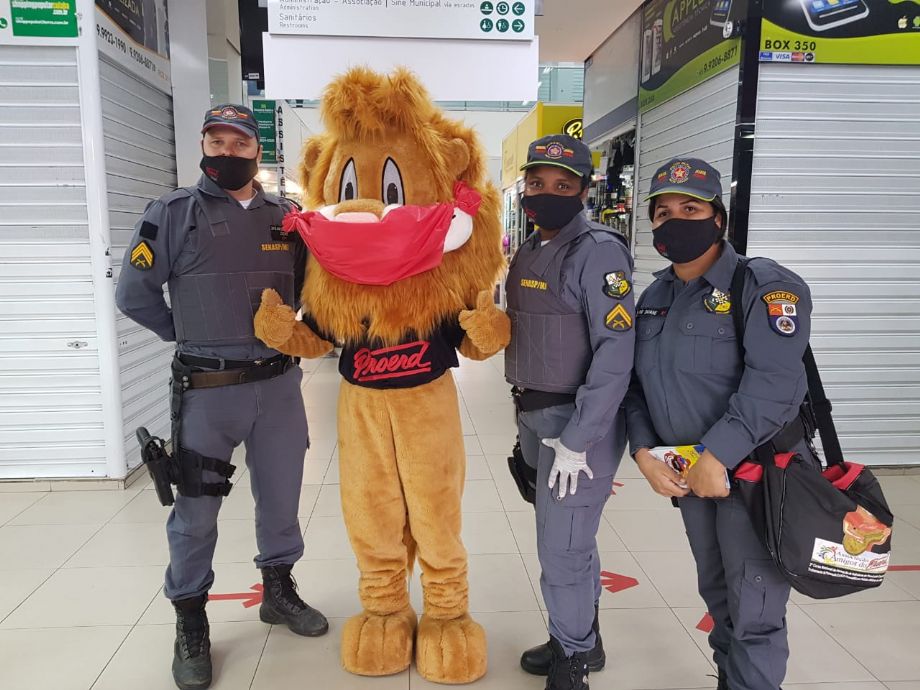 Mascote do Proerd visita Shopping Popular com projeto de prevenção à Covid 19