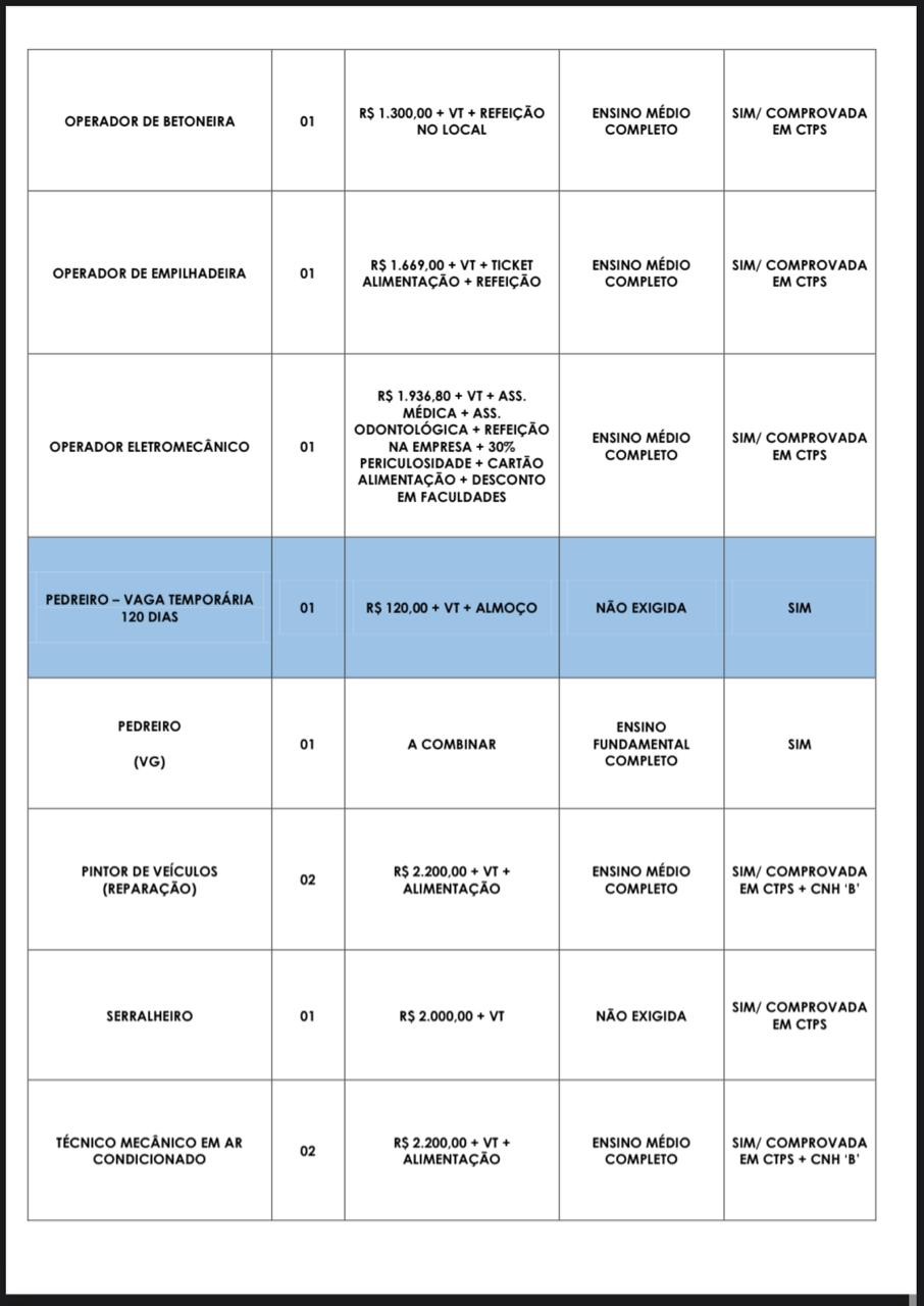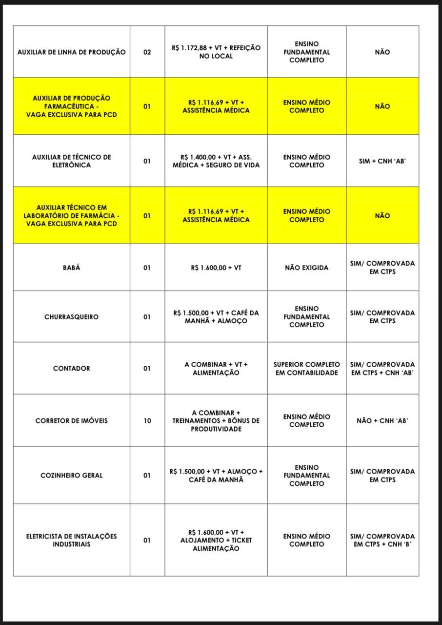 Confira todas as vagas disponivéis para segunda-feira (09):