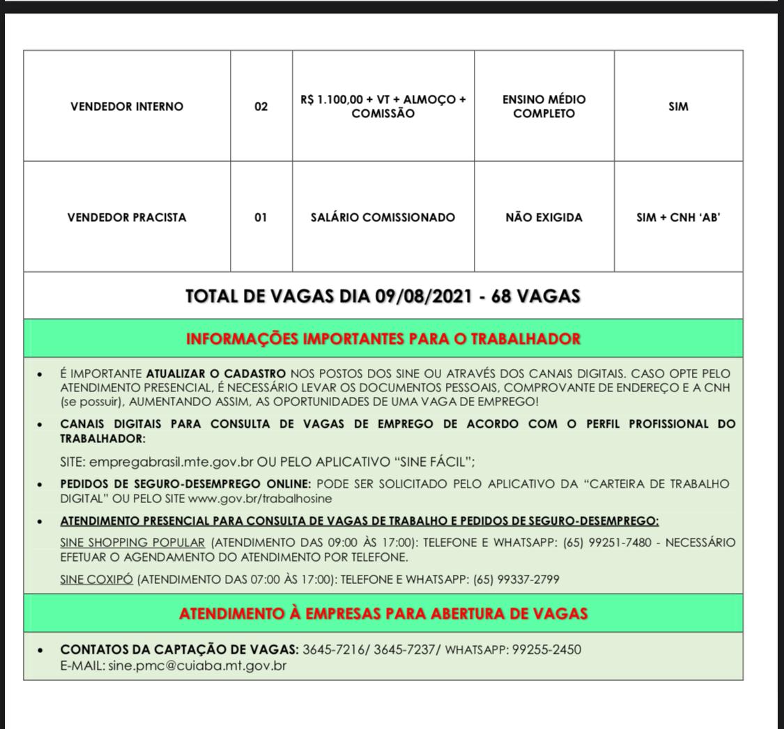 Os requerentes devem se atentar, as vagas são preenchidas diariamente, por isso cuidado com a falta de atenção. Para os que já estão cadastrados no Sine, sempre atualize o cadastro, para não perder essa chance!