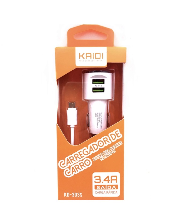 O carregador veicular com 2 portas Usb converte o acendedor 12V do seu veículo em uma fonte de alimentação 5V. Possui design compacto e 2 saídas USB de 3.4A