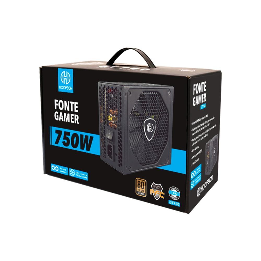 Fonte de Alimentação Gamer Hoopson 750w 80 plus bronze pfc ativo