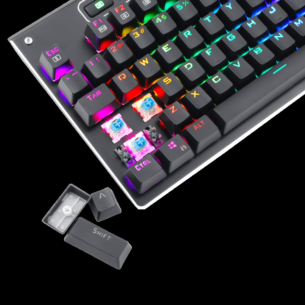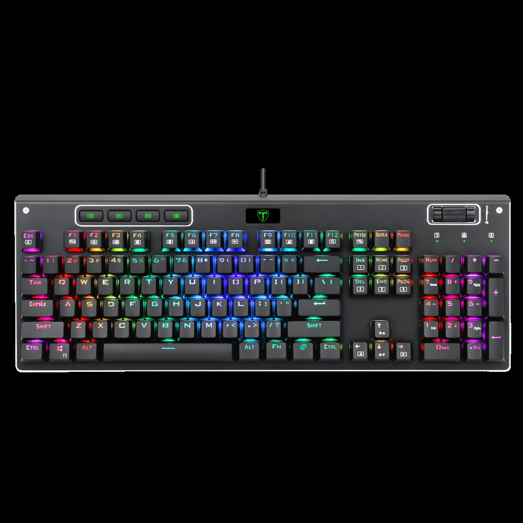 Teclado Mecânico Gamer T-Dagger Adriatic RGB • Teclas multimídia dedicadas de fácil alcance para o controle de músicas. • Barra de rolagem de volume para um ajuste rápido e prático do volume do computador. • Layout fullsize para aqueles que não podem ficar sem o teclado numérico para o trabalho, jogos ou até mesmo streaming.. • Cabo trançado de alta durabilidade para estender a vida útil do teclado. • Função das setas pode ser trocada com as teclas WASD.