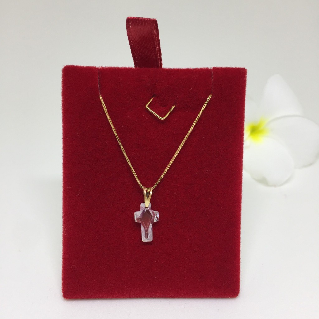 Corrente e Pingente Cruz em Cristal - Ouro 18k