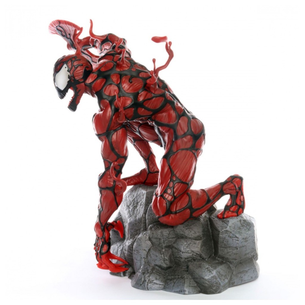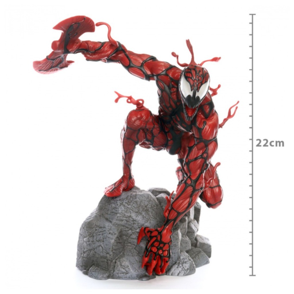Que comece a carnificina! Marcando a chegada do psicopata Kletus Cassady à linha da Marvel Gallery, este Diorama de PVC de 22 centímetros o retrata balançando uma mão em forma de machado no topo de uma base rochosa. Desenhado por Caesar e esculpido por Alterton, esta escultura é feita de plástico de alta qualidade, apresenta aplicações de pintura detalhadas e vem embalada em uma caixa de janela colorida.