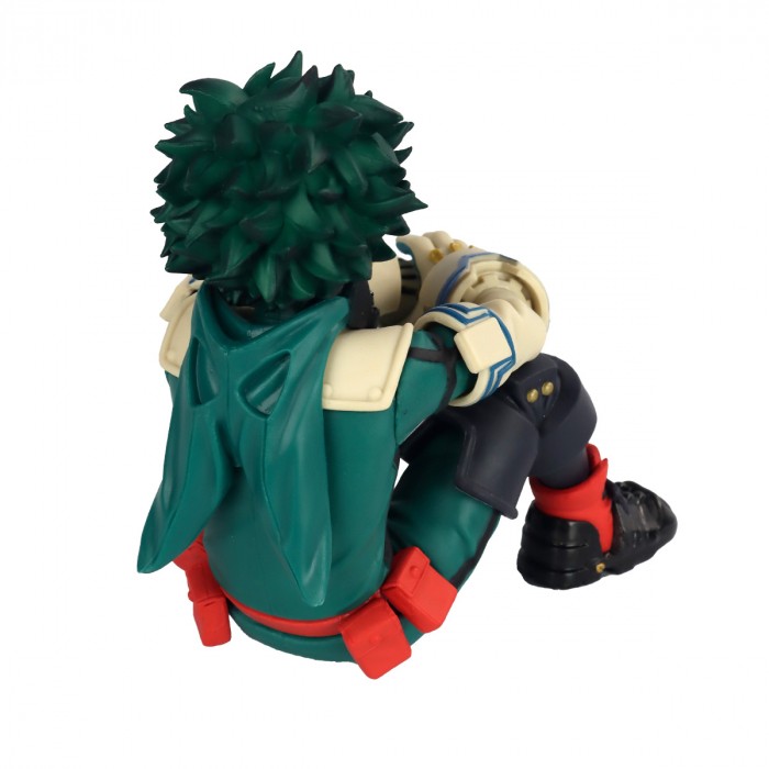 Da série de anime de sucesso My Hero Academia vem uma figura de Izuku Midoriya! Deku está vestindo sua fantasia de herói. Izuku é retratado relaxando e tem 11 centímetros de altura