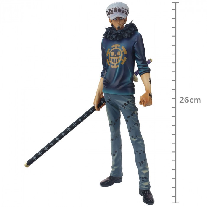Da série de anime de sucesso One Piece vem uma figura de Trafalgar Law! Ele é esculpido em grandes detalhes e tem 26 centímetros de altura.